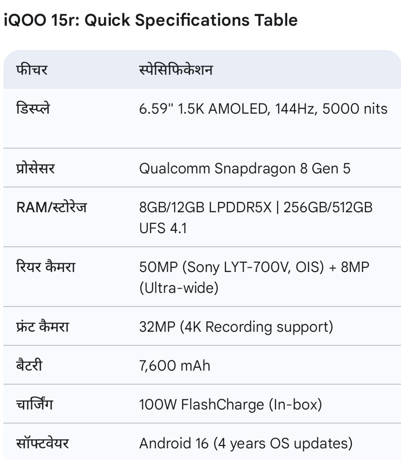 - iQOO हमेशा से अपने दमदार हार्डवेयर के लिए जाना जाता है और 15r इसका जीता-जागता उदाहरण है।