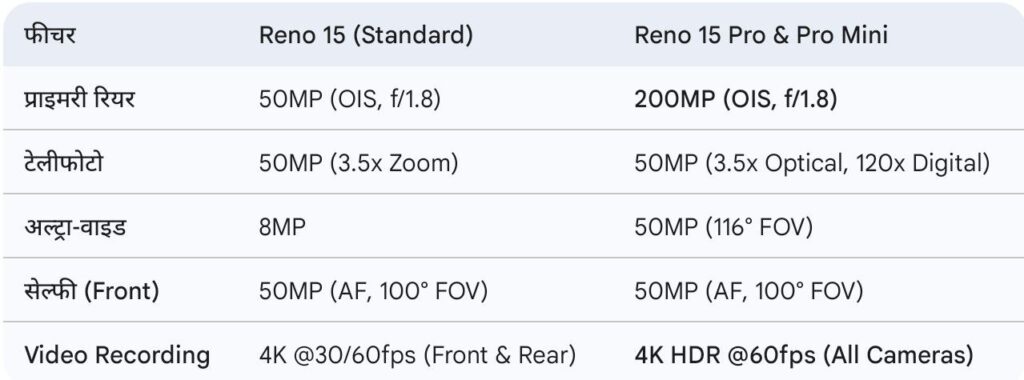 - Reno 15 Pro & Standard: 6500mAh की विशाल बैटरी।